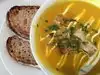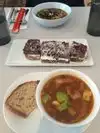 My husband and I both had bowls of the potato and leek soup- very good served with a nice bread. Our son had the chili which was also great as was the hummus and veggies. Nice casual lunch.