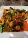 Ordered drunken noodles w beef and shrimp pad Thai. Only complaint is when they asked if spicy ok....I said fine. We couldn’t finish the food! Spicy to the point where I may have blown out my taste buds 👿