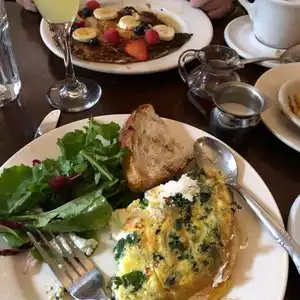 Very cool place with a nice staff and open kitchen. Great breakfast, coffee, bacon, simple omelet. Went for Sunday brunch and would go back again in a heartbeat.
