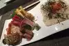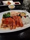 I was shocked at limited offering (and prices for lunch). I ended up having pieces of salmon and 3 pieces of tuna sashimi plus 4 oz. of house sake. No salad, no green tea...nothing else. Price: $45. The salmon was very good but the smallest piece of sashimi i've ever had (Japan, Canada, USA). The tuna was bigger (surprising because tuna is usually more expensive) but smelled old. Definitely do not recommend this restaurant.
