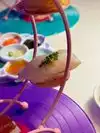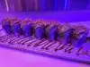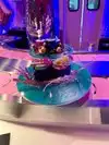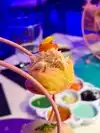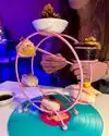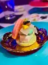 What I actually experienced was even crazier than I anticipated. The restaurant is small, and features seating for perhaps 50 people. A hostess clad head to toe in cosplay quality Kawaii dress greeted us enthusiastically. As we were shown to our table, I noticed a Japanese style sushi conveyor belt, only there was no food on it. There was art. Above our heads, light fixtures were giant lipsticks, massive floating cute cat heads, and mirrors cut into the shape of clouds. Everything in here seemed to glow some color or the other, like you were about to have a meal at Willy Wonkas Japanese uncles house. The menu was a single sheet, and had all kinds of odd and interesting items. To make sure I got the full experience, I opted for the “Pure Imagination” omakase dinner. Glad I did that, because this has to be the most fun and immersive way to have dinner here. One course at a time, the kimono wearing server brought small plates that were neatly decorated with flakes, sauces and even rice in different colors. Each of these plates was kind of a work of art in itself. A plate with a potato monster, a metal carousel with sushi riding along. A sauce plate in the style and colors of a paint palette. The finale was an item called the Chirashi Parfait. It featured 18 different items, presented in the style of ice cream, but absolutely sushi. Radical. The cocktails were fun and they had many non alcoholic items as well. I got quite full and wondered how much more I may be able to handle, but decided to call it quits and be content with what I had eaten. Just before I requested my check, I noticed some boxes in a hallway. Inside clear bins, were those bears from the 6%DOKIDOKI store in Japan. I couldn’t believe it. I bought one as a souvenir but I have a very special little girl in mind that I think would love an Easter surprise. Overall the whole place was fun, I would recommend it to any sushi enthusiast in NYC, especially the adventurous and colorful of you. Considering the fun spirited theme of the place, I’m sure you can wear whatever you want in. You’ll be wearing a huge smile on your way out.