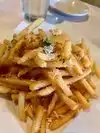 If you have a flight from Love Field and want to catch an upscale dinner, this is a good place to go. Decked out romantically, the food is very good and there is a great wine list and bar. You can't see the place from the street. It's tucked in a shopping center next to an Albertson's supermarket. On my visit, Maryland soft shell crab was on special and delicious. The truffle oil and cheese fries were very good. We added marinara sauce as a dip. Fried green tomatoes, a Southern tradition, were also quite good. The restaurant is only open for dinner, and is closed Sunday. Check the website for hours.