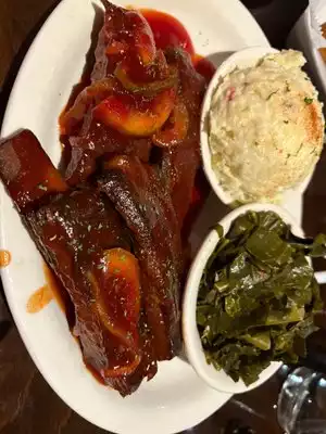 Very nice culinary experience but also a beautiful tribute to the founder of this mythical restaurant. We quickly found a table, the Welcoming, the meal everything was excellent. The hot cornbread was delicious. RIBBS barbecue sauce with a revisited potato salad and Collar Green were a delight. The portions are very generous. Very affordable prices. Being in this mythical place but where human warmth reigns, a conviviality is striking.