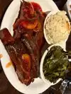 I had mixed good and not so good things to eat. First of the ribs were good but not great. The sides I had were collards and fried apples. The collards were not so good, they were tough and old. Not like the tender collards we get in NC.. Fried apples good. Overall not up to my expectations.