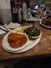 made reservations but was walked past several open tables to a table that had a crusty, ugly spiral staicase that led to a basement. the cornbread was good, it had a hint of cinnamon. ordered an entree of fried chicken and ribs with collards cow peas and rice and mac and cheese. collards were good but everything else was ok at best. still trying to understand the "soul" food thing?