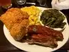 Really nice soul food, tried the wings, mashed potatoes, cornbread, collard greens, catfish, ribs and pork chops. Tasty. The Pork chops were a little overcoked, but overall amazing! Worth tryinh. Great service and famous reputation is worth it! Ribs were delicious, a bit pricey for what we got!