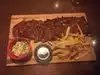 I had a full rack of ribs here and they were very good, excellent service and even though this place is not in the best location it was still nice to sit outside. The price was very good (based on what i wouldve paid for an equivalent meal in the UK) and my waitress couldnt do enough for me. It was a very hot day and even after a couple of cokes my waitress still offered to get me a cup of water to walk away with when i left.