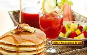 My wife and I had dinner at Talia's Steakhouse and Bar. We had a great time. Our two waiters were very helpful and attentive. (And they had a good sense of humor, as well.) The portions served were very large. The food was delicious. I ordered BBQ spare ribs with a side order of mashed potatoes, my wife had the hamburger and we shared a delicious leafy salad. The two couples at the next table, whom we struck up a conversation with, were also happy with their meals. We'd highly recommend this restaurant to anybody who'd like to have a great night out.