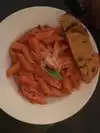 Rigatoni rely not tomato based sauce..misleading. Not very appetizing. Disappointing. Garlic bread decent. Would not come back.