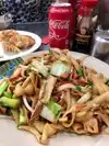 A friend and I came for lunch. I had the pan fried noodles with chicken, with the small wide noodles. Our food came quickly and was very tasty. The portion was huge - for lunch we honestly could have split one entree between us. The space inside is very limited and crowded, but there's lots more space to eat outside if the weather is nice. Cash only for payment!