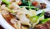 The veggie dumplings are nothing special but the fried noodles (we ordered the fat ones) with chopped pork are absolutely tasty! Great quantity: We shared one serving and were full.
