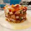 The food is delicious the meal is taken in the street where you share the table with other people the experience is to be lived Even if the staff is not friendly or cheerful