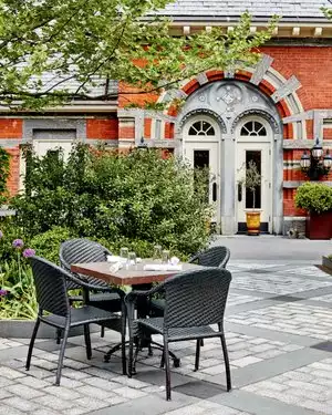 The place has a very pleasant vintage aura. The rooms are very nice and bright. The dishes served are pleasant and the staff very professional and prepared. The outdoor space is very well maintained. Prices in average New York. Approved.