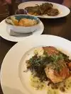 Three of us had dinner on a busy Tuesday evening. Absolutely wonderful meals. Service excellent with friendly staff. One of the group was celebrating a birthday. She was given cake and ice cream after dinner. A sweet surprise. I had the brick roasted chicken with fresh green beans and mashed potatoes. Delicious. Another in our party was gluten free and she was accomodated, including offering gluten free rolls before dinner. She said her steak was perfect. Third friend ordered the ravioli and said it was delicious. Such a wonderful experience with great meals.