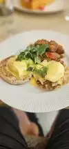Went for brunch at noon on Sunday with spouse. Very loud and cramped seating at two top table. Waited until after our food arrived to get coffee and iced tea. Entrees were not served hot at appetizing temperature and coffee was barely warm. Waited for drink refills way too long. Self serving male waiter then complained to us when he was not given great tip. It was embarrassing since it should have been obvious to him that the whole meal was lackluster service. Our brunch was $130 for only two entrees and a basket of bread.