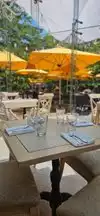 Nice restaurant, very pleasant place. Outdoor tables. Too bad for the Service not up to the place, slow and not attentive to the customer. Normal food.