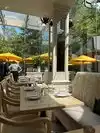 Great outside terrace which was welcome on a hot day. The food was excellent and the server efficient and friendly. Enjoyed a very pleasant couple of hours here. It was expensive but worth it as we enjoyed a wonderful, memorable lunch.