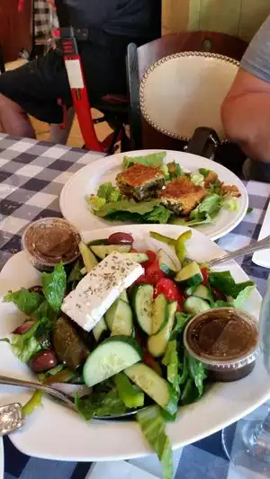 We came here quite by accident and it was a very good experience. The younger ones shared a pizza which was excellent. Two had the Greek lemon soup—Avgolemono. The soup was very good as was the combination platter of Greek appetizers which we all shared. The salads were huge--I recommend sharing one for two people. The Greek meat dish was declared "really good". All in all, pleasant service, quiet and something for everyone.