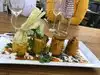 We tried 4 appetizers and 3 mains. The appetizers were good but not outstanding. Quite expensive for what you get. As an example, lamb riblets for $26 but mostly bone and fat. Best main was the complete Brazino fish. Service was good. Arrival front desk not attentive. We were on the upstairs patio and they advertise heaters but they were not on. Had to ask twice for them to be turned on. For the money, we would go elsewhere.
