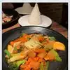I had the green curry with seitan duck while my guest had the Thai basil with seitan duck. Both came with rice and were very tasty. My green curry was marked with an * which indicated spicy however there was no explanation on the menu for the * . I didn't find the food spicy enough. If you like your food hot, I suggest that you communicate that to your server. I would definitely go back.