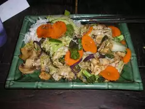 Crispy on the outside, right texture on the inside, the tofu was the best I have ever had in a stir-fry dish. The noodles were good, the sauce a bit sweeter than I might have found ideal but the smoky flavor was delicious. Inexpensive, quick service. I was a little turned off listening to the wait staff asking people if they wanted to leave a tip as they were leaving the restaurant -- but then, I guess they shouldn't have had to ask if people tipped appropriately.