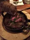 Came in to the hotel for a late check in and was starving. Came downstairs since the restaurant upstairs stopped seating and ordered the roasted cauliflower and beef short ribs and I must say the short ribs were amazing! I would order it again, pickled onions made it and the bread was great. Only downside was cauliflower had a strong wine flavour and tasted like a almond extract in the cream instead of roasted almond flavour