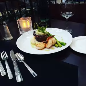 Just a block from the JW Marriot where we were staying. Wife had a burger which was very good and I had a salad which was actually fairly large and tasty for a 'standard" side salad. Wait staff was very attentive. Nice outdoor patio area that has TV's... it's a Sports Bar. Dining room and Sports bar area are separated (right side for bar, left side for dining room). Overall, a good value. Went there after watching AL Crimson Tide defeat Virginia Tech. Had a good crowd (but not overcrowded) at 10pm on Saturday night.