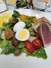 Food, service and ambiance were terrific. Started with lobster and crab appetizer garnished with corn relish. Tuna was seasoned and cooked perfectly. Asparagus was fresh and crisp. Just delicious. And to top it off, they served a complimentary dessert and champagne as a birthday celebration.