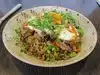 Nice décor, nice layout. Busy and bustling so obviously doing well. One thing that doesn’t work is the acoustics – we were a group of 4 and at times we had difficulty hearing each other since it was quite noisy. So some fabrics/ maybe booths to reduce noise needed. Having said the above, the food was good. I enjoyed my brisket egg roll starter (a lot) and the braised goat udon noodles with a spicy satay style sauce. I was too full to have dessert but attempted the Chocolate flourless cake. I didn’t finish since it was quite a good-sized portion. Staff were friendly and helpful.