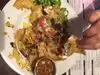 Vegan restaurant with a large menu. Items ordered--Thai chili chicken (seitan), served with a dipping sauce--delicious. Radical Ruben sandwich with fries--enormous sandwich, shared. Spinach artichoke dip with thinly sliced slightly toasted baguette, very tasty. Bahn mi sandwich with sweet potato fries, generous but not as enormous as the Ruben. The Mac and Teese and soup of the day were disappointingly bland, but everything else was delicious. For vegetarians and vegans, it's great to be able to order without concerns! Very busy, very casual atmosphere.