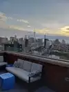 Went there with friends and we went in laughing around 12am and security assumed we were drunk and rudely td us we couldn’t go up. Security man with grey hair was not kind and escorted me and 2 friends out of the building. I live three blocks away and am A HUGE FAN! A no no!
