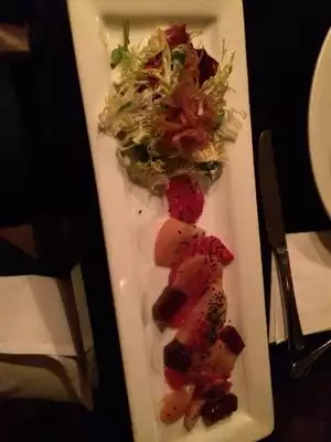 Dropped in for happy hour before going to crystal ballroom. Drinks - nice $5 Pilsner and Pinot Grigio. Very attentive service. The food. We had charcuterie plate and salmon. Both good. Waiter brought extra bread for charcuterie on request. Atmosphere was great for a quiet drink. Dark. Small tables. Unique decor. It was mid-week so there was plenty of space. Like it.