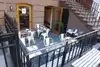 Our group of 6 were seated on a communal table in the upstairs dining room. If conversation over dinner is important to you sitting upstairs is preferred. The downstairs noise level at least during our visit made oral communications at a normal tone impossible. We were promptly seated by a smart waiter who found it below his dignity to replenish our water glasses. Soup was served without spoons, request for salt had to be repeated several times, one soup plate sat squarely on another dish while being served. The wine list is good if a wee bit overpriced. Our food received generally raves around the table. The special of the day, goat stew, was tasty and faintly reminiscent and not unpleasantly so of goulash. If the service would have been better we could have called it an almost perfect meal.