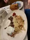 Traditional diner experience, plain and simple - no frills. Ate here on New Year's Day, it was busy but once you were seated and had a waiter appear you were set. My order got mixed up, but again they were slammed with customers. I was too hungry at that point to wait for what I actually ordered. Good: -Flame Omelette -Corned Beef Hash Benedict Bad: -I found out after I waited for it that the Corned Beef Hash Benedict was actually just scrambled eggs and hash (not poached egg over hash over a bun with Hollandaise sauce)