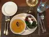 We ordered several appetizers (the pizza was awesome). I also had the potato leek soup. Yes, potato leek. It is served table side, with 4-6 small perfectly cooked cubes of spiced potato, and the leek is poured over it. Impressive, and very tasty. Overall, all the items were cooked excellently. I ordered the lamb and it turned out a little rarer than I usually have but was still very tender and good. Presentation were excellent as were a very attentive and courteous wait staff.