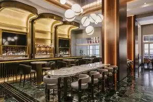 Wonderful views and location. The decor is modern , nothing special. What came as a great disappointment having dined in many of Jean-George's restaurants over the years from the time of Vong, was the mediocrity of The Fulton. The smashed peas and potatos with the popular fish and crisps was over salted. The servers were not particularly attentive, not rude but not very well trained. Skip the visit, certainly not worth the price.
