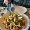 As a born and raised New Yorker, I've seen the changes that Pier 17 has gone through. From the 3am fish deliveries that used to be the Fulton fish market, to the rattlesnake pasta at the Pizzeria Uno; I've had a lot of memories at the South Street Seaport. When Sandy took the area out (yes, I was there), I didn't think they would ever recover. But here we are. With a completely different concept. No longer a mall but an open space with great restaurants and entertainment. The Fulton is a huge space. There was a Shania Twain concert on the roof the night we went and the sound proofing is so good that we didn't hear a thing from within the restaurant. In terms of the food, my stand out dishes were the trout and oyster tartare, the tagliatelle, and the longevity noodles. The staff is very friendly and the inside is beautifully painted. If you're lucky enough to get a window seat, it also makes for great people watching. I had a lot of fun and would be back again.