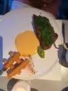 Had dinner at The Fulton and sat outside on the patio — the view of the Brooklyn Bridge was amazing and even better as it got later and the bridge lights came on. I had the swordfish Milanese, which was delicious, and we ordered the carrots on the side, which were so good. My husband ordered the Crab and Corn Risotto, which he said was really different than a typical risotto with crunchy bits of what he thinks was puffed rice - but delicious and would order again - Great spot for a relaxed evening by the water.