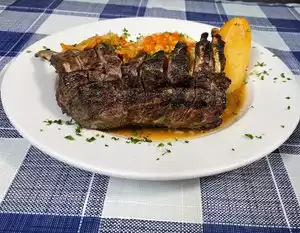 Very messy, plates look all the same, covered with "spices", all look the same at every table... Wanted to go away immediately, but hoped for the better... Greasy, burnt to the extreme. Somebody was taking shower! in the men's restroom!!! behind the curtain, Another "jewel" covered by "Greek" cuisine. Not to offend anyone, but on Ventura you must be very careful if you are not a fan of this greasy "pseudo" stuff... Disgusting food, nice vibe, though. Perhaps, the guys who play live music and also low lighting kinda cover it all... But, just try the food and that's it. Never again.