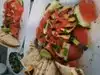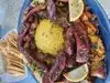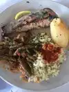 Began with babaganoish and hummus. The pita bread was hot and fresh. The lamb kabobs with rice and vegetables was very tasty. The chicken kabobs were also very well made. The blue Mediterranean salad was great. My salmon with steamed vegetables was equally as good. I would recommend this restaurant when you are in Sherman Oaks, California.