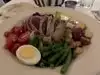 This restaurant is directly across from the theater where Hamilton is playing. Service was prompt and attentive and thoughtful. Had the salad Nicoise which was very good, and an unoaked Chardonnay. Music is big band, Frank Sinatra and Ella Fitzgerald.