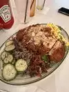First and last time. Food took forever while others coming in after we ordered received their food before us. Actually they were almost finished when our food arrived. My husband liked the goat and scrambled eggs. My pancakes were cold. I am so sorry we went there I was expecting a NY deli We were told the delay was due to the pancakes being so thick and the omelet “busting”