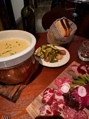 If you’re in the mood for some warm melted cheese during the cold covid winter, look no further. The Lavaux Swiss Wine & Fondue Bar is the perfect find. They have a great selection of Swiss wines, many of which are unavailable or very hard to find in stores. They have a small but decent menu selection including a raclette dish, meat and cheese charcuteries and of course 3 types of cheese fondues. Each fondue is served with unlimited portions of bread, mini potatoes, pickles and radishes. At first I thought the pickle and cheese combo would be weird but it actually grew on me after a couple bites and ended up being my favorite. We tried the Assemblage fondue which is a mix of Gruyere, Vacherin, and Val De Bagnes cheeses. It was topped with a small amount of chives. It had a savory yet tangy taste. We also ordered the meat charcuterie. The foie gras mousse was very unique and the meats were flavorful and salty. They paired well with the cheese. After awhile the cheese started to taste too salty for us so we were unable to finish it, but it was still fantastic. We would come back to try the other fondue varieties and the raclette. Only downside was the temperature with the outdoor dining. There were heaters available but they were turned very low and barely heated the small room. The restaurant offers each table blankets for extra warmth...a nice thought but one of the blankets for our table had a lot of debris on it (dirt, wood chips, little sticks). We arrived at 12:30 on a Sunday, shortly after opening...so the blanket technically should have been clean. With the concept that covid can survive on inanimate objects, it was a little off putting...cause you just never know who was using it before. But other than the blanket and cold, the food was well worth it.