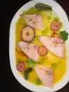 I had been dreaming about the famous chicken ever since hearing about it in New York. The foie gras, the truffles, the presentation.... I just want everyone to be aware that they change the incarnations in Las Vegas every few months, and while I am also aware that the original recipe is dead (I think not allowed for trademark reasons), the newest menu has the foie gras and truffles listed as ingredients, so I was hopeful. There was no grand presentation....the cut up chicken is just served in a cast iron skillet with the rice with chorizo and peas underneath. We could not discern ANY foie or truffle taste, so asked our server - she said it is pulverized and mixed with the breadcrumbs under the skin. Totally lost. Now, I want everyone to pay attention to what I just described about the chicken....chicken with saffron rice mixed with chorizo and peas....now what does that sound like? We wish we had been smart enough to figure it out beforehand, but it tasted exactly like....paella. $120 paella. Now you decide if that's what you want to do. We were totally disappointed. The place is lovely. We just wished we had ordered something else.