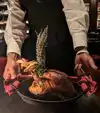 I agree about the chicken. We had it last year and it was amazing. This year, meh. I had no idea someone could trademark a recipe, and this version just is not it. However, the hamacki beet salad is still delicious.