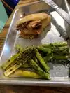 Stopped by here at 11:30 for lunch based on friend’s recommendation. The salmon was cooked just right and fresh (we have to wait a few more minutes so that salmon can be cut). The grilled asparagus was perfect. The portion is big, we shared one sandwich and was enough for both of us. It’s a small place, the service is slow and the wait time may be long, but, it’s worth it. Not some place to go if you are in a hurry. Will come back to try out their Saturday brunch.