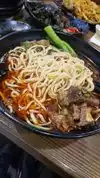 What a cute little spot! This cafe serves freshly made noodles, including their famous "knife cut" ones, on the premises, and behind a glass partition so that you can see the action as it happens. You can then order said bespoke noodles in a soup, such as the beef brisket one with spicy broth and vegetables, as I did, on a wintry cold (for Las Vegas) day last week. It was delicious. The chef made some really good decisions here. The broth is super well-balanced, even the spicy version, with just the right amount of seasoning, spices, and aromatic herbs and vegetables. You could separate the chunks of beef with a spoon, it was so tender, and yet, it did not fall apart in the soup. Seems as though someone knows exactly what they are doing in the kitchen. The noodles did not disappoint or spoil the party, either. I ordered--against my server's advice--the knife-cut noodles. He thought I would not enjoy them since they may be, apparently, an "acquired" taste. He suggested that I have the thinner noodles, or else the wide noodles that are not cut with a knife. These tend to be less chewy and therefore, it goes, more palatable to Westerners. Respectfully, he was wrong! (And to his credit, he was happy about that--and beamed broadly when he saw me slurping up my soup and noodles, joining the "clean plate," er, "bowl" club). I liked the wide, chewy noodles with the soup. They did not take away from the flavor of the broth, but did not totally soak it up, either. It was distinct, yet integrated, like a complementary relationship. And the texture was chewy, but not unlike an al dente pasta, if you know what I mean. The only reason for the point knock-off is the seating. It is a very small cafe, and it can feel a bit claustrophobic. I think they could use the space a teeny bit better, too. There is a table to the right, that seems to store odds and ends, that could be cleared off and dispatched to accommodate more customers. I also see a possibility for another bar along the other side of the noodle display kitchen for seating (assuming the Fire Dept. has no problem with a more narrow hallway). The kitchen could probably use less space, too, in favor of more seating. As it is, you should expect to wait at least 15-20 minutes or so to be seated, and then you will be in a closely cramped quarters, and in an uncomfortable chair. Leave your coat and bags in the car. If they can fix this, it will be a contender for "perfect."