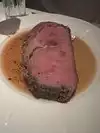 The inside of the restaurant is pretty. A lot of detail. Entertainment is a nice touch. We had a view of the fountains from the booths. That was a great show! The food was just ok. Presentation is a definite 5 star though. The bread looked too pretty to eat! We ordered the wedge salad, Caesar salad, Vegetarian tiger roll, the prime rib and the beef fried rice. The salads were good, the vegetarian tiger roll was different with the tempura squash and shiitake mushroom and crispy shallots, the prime rib was salty and tough. The prime rib is served in rolling carts. If your server is animated youâll enjoy the carving show. Our server was lackluster as was the beef. The fried rice was tasty. The bathroom decor was beautiful!