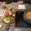 Fun spot to cook your meal and chat with friends in the process. Delicious meats to cook in broth and delicious fruit and cake to dip into pots of chocolate. Only downside is if you are really hungry then you have to wait every five minutes to take a bite.