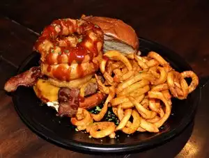 + Friendly staff. + Clean place, and decent options on the menu including all-day breakfast. - Burgers weren't as good as the price portrays. Left a cheap, greasy burger taste in the mouth afterwards. - Paid an extra $2 to upgrade from French fries to onion rings which were disappointing. No real taste and just way too much batter. - Felt expensive but this was down to the quality of food in comparison. Prices were on par with other places in the area but the food really let it down. - There was also a buzzing noise coming from the speakers during our visit. They had a phone connected to their speaker system which sounded like the cable wasn't connected properly, and there wasn't any music playing to drown it out either.